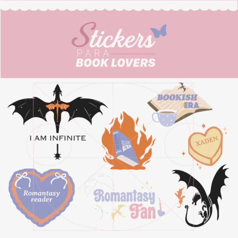 Este pack incluye 7 stickers de temática saga de libros Alas de Sangre